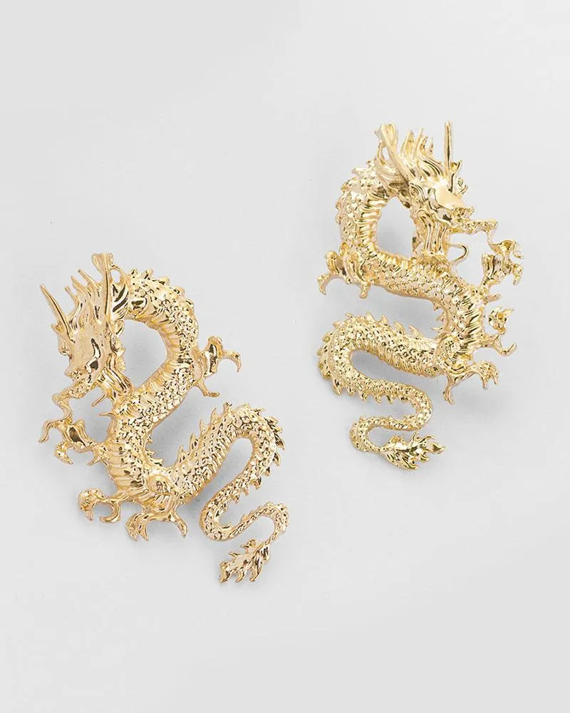 Make a bold statement with these eye-catching dragon earrings. Their vintage-inspired design and exaggerated silhouette add a touch of fantasy to any outfit.