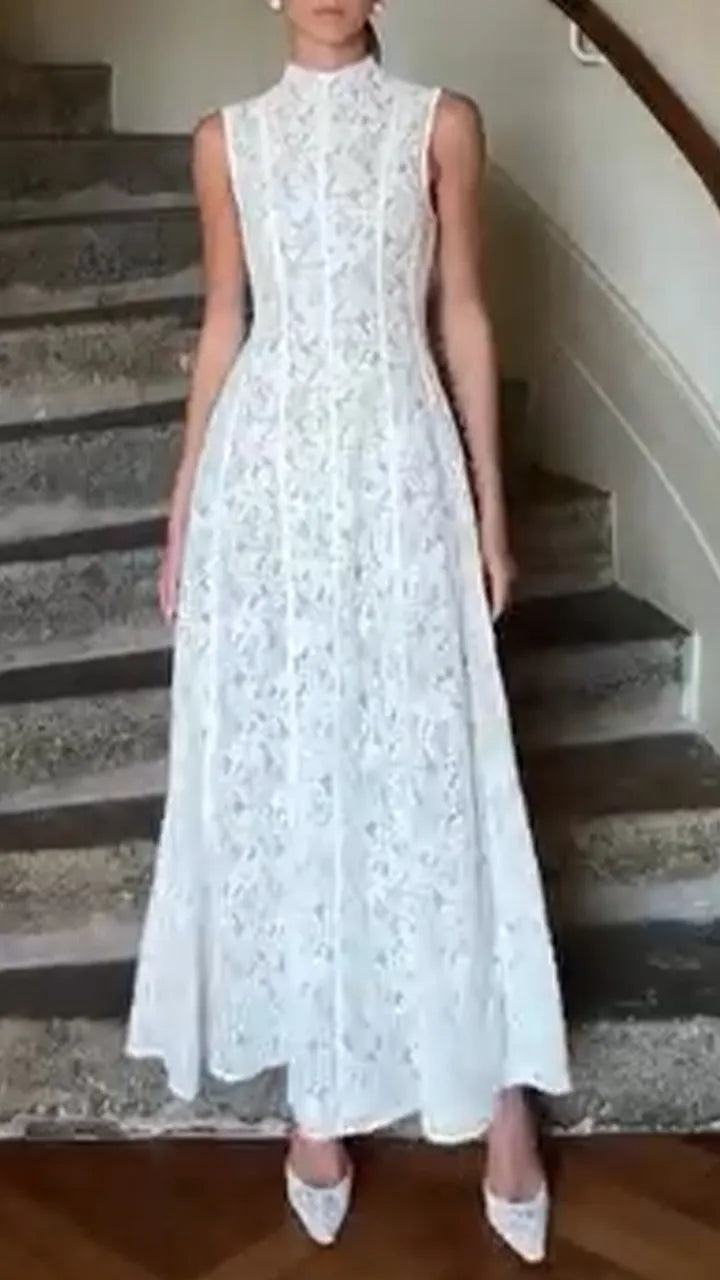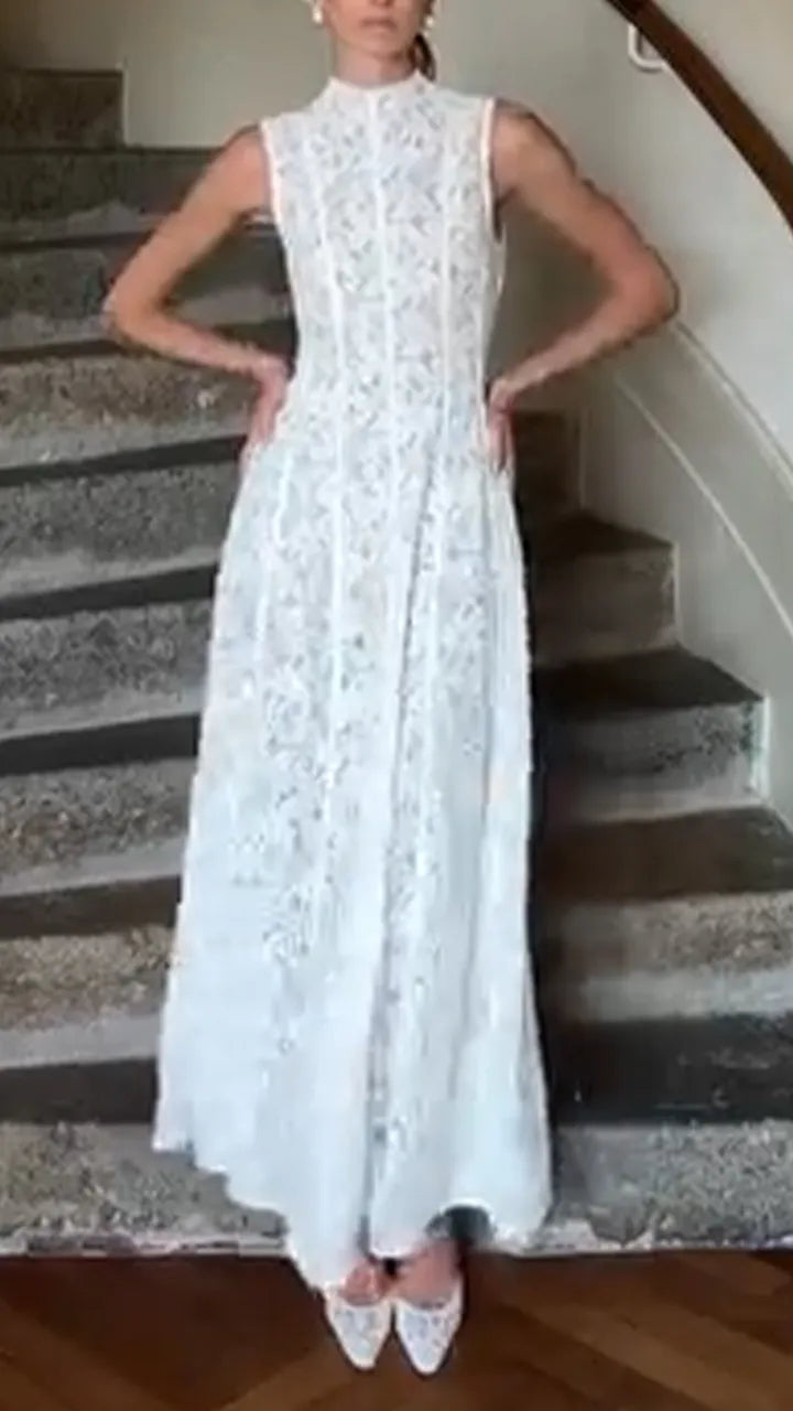 Discover your new favorite dress for easy, everyday style. This chic hollow out design features a flattering round neck and a solid color base, creating a look that's both elegant and relaxed.