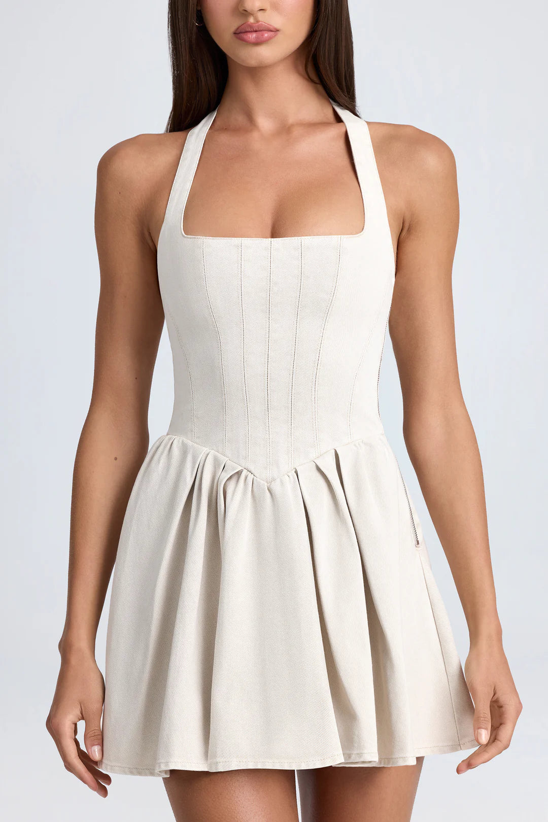 Meet your new go-to dress for effortless day-to-night elegance. The Darcey mini dress features a structured corset bodice with exposed boning, flowing into a romantic gathered skirt. Crafted from premium cotton twill, this timeless silhouette transitions beautifully from garden parties to evening events, offering a custom fit and unforgettable style.