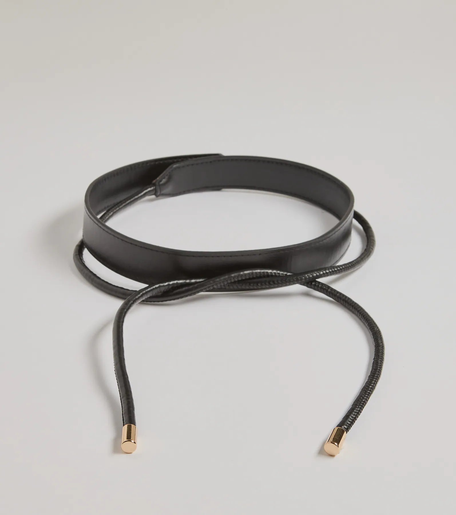 Elevate your everyday outfits with this chic tie-front belt. The sleek faux leather and wide band add instant polish to dresses, jeans, and everything in between.