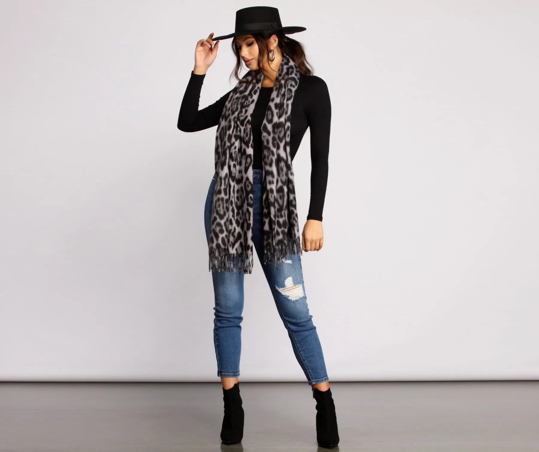 Elevate your cold-weather outfits with this chic faux wool boater hat. Its classic silhouette and stylish ribbon band add a touch of timeless sophistication to any look. Perfect for pairing with a chunky knit sweater and thigh-high boots for a complete, cozy ensemble.