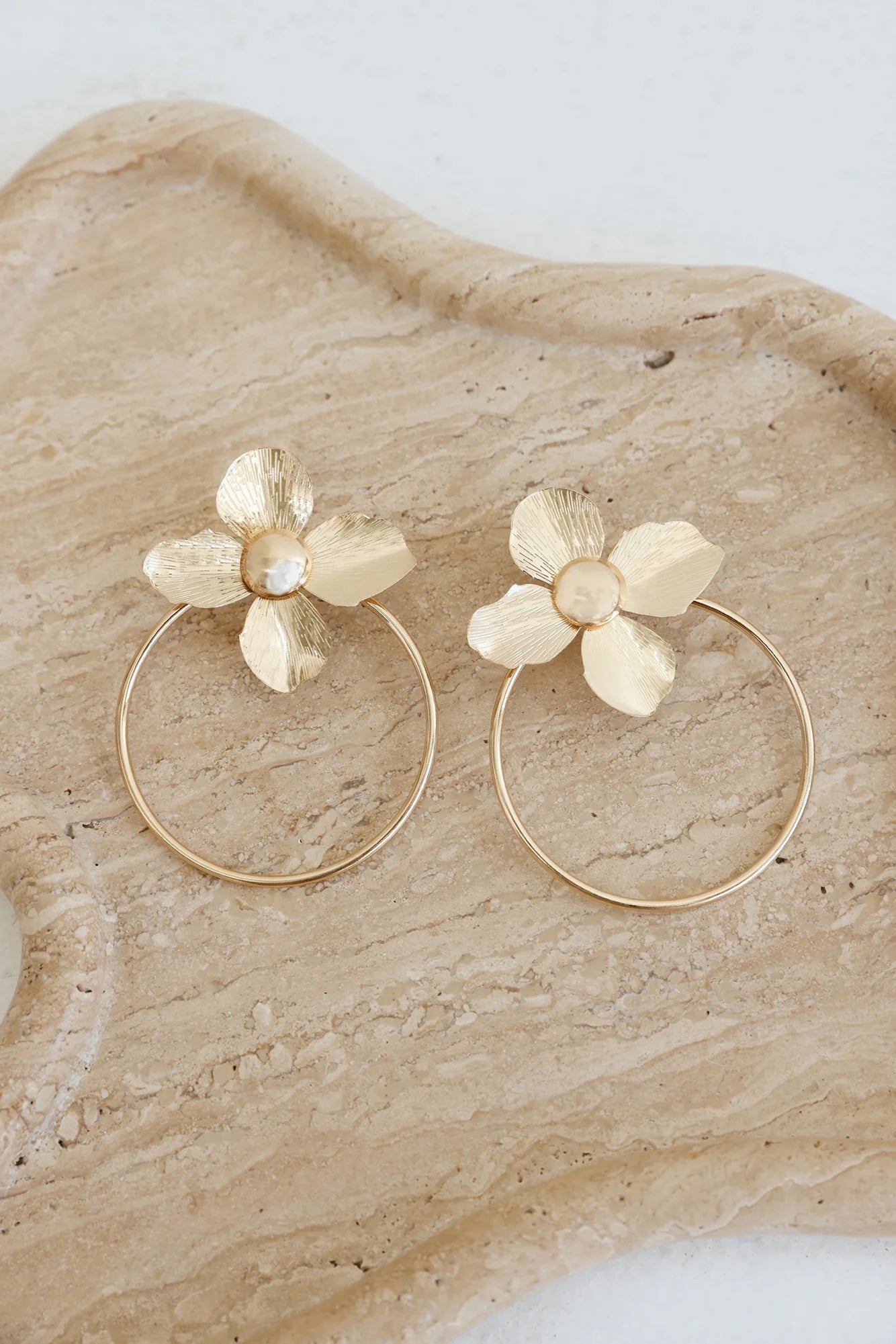 Infuse your style with a playful, tropical spirit. These gold-tone hoop earrings feature delicate flower details, creating a fun and effortlessly feminine accessory. Perfect for adding a bright, sunny touch to everyday outfits, vacation looks, or summer festivities.