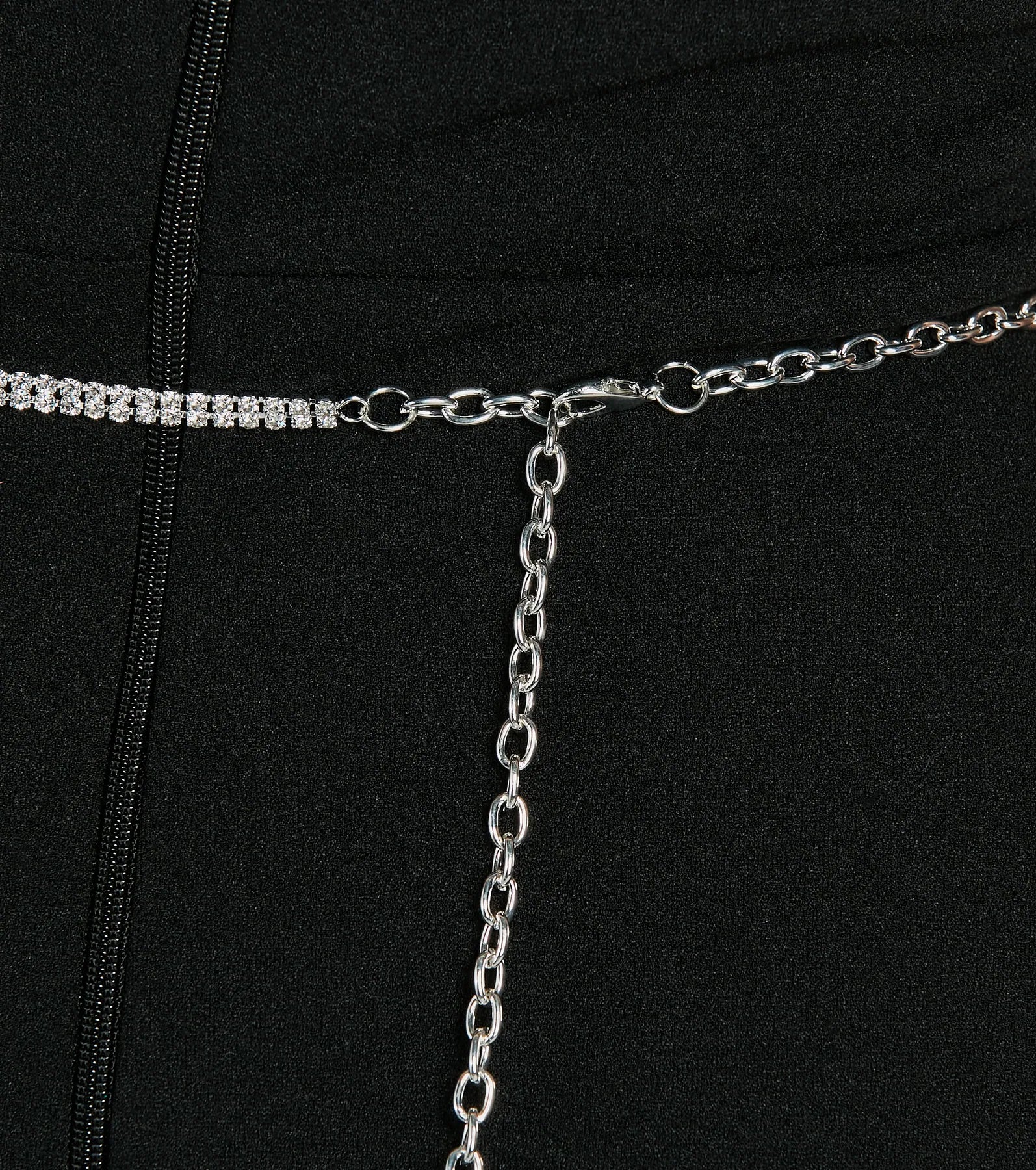 Elevate your evening look with this stunning rhinestone teardrop chain belt, designed to add a touch of dazzling glamour. The luxe teardrop outline is meticulously embellished with two shimmering rows of mini rhinestones and finished with double rhinestone accents for maximum sparkle. The back features an adjustable chain with a secure lobster clasp closure for a perfect, custom fit. Drape this statement piece over a sleek crepe formal dress to instantly transform your outfit with gorgeous, eye-catching sheen.