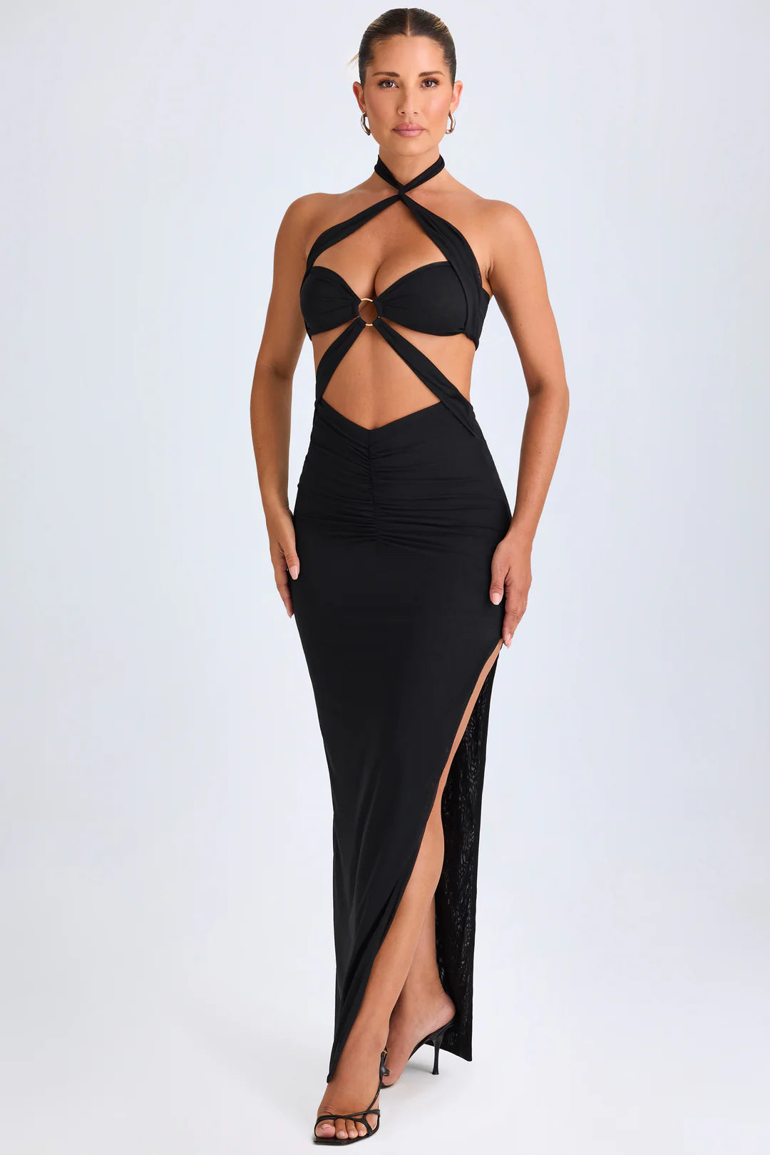 Turn heads on balmy evenings in this statement-making maxi dress. The Bethania silhouette combines classic elegance with daring cut-out details for a perfectly contoured look. Crafted from premium stretch mesh, it drapes beautifully and moves with you.