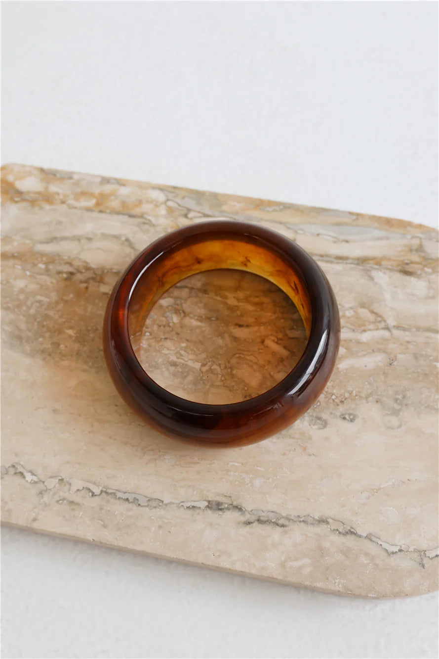 Elevate your party look with this playful bangle. Its timeless tortoiseshell pattern and easy slip-on design add a sophisticated yet effortless touch to any outfit, perfect for creating memorable style moments.